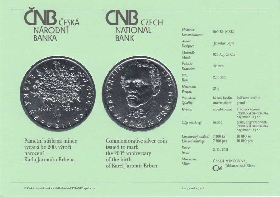 | 1698. | 500 Koruna 2011 - 200 let narození Karla Jaromíra