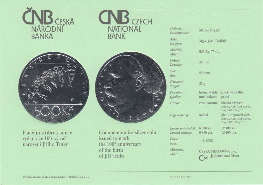 | 1699. | 500 Koruna 2012 - 100 let narození Jiřího Trnky,