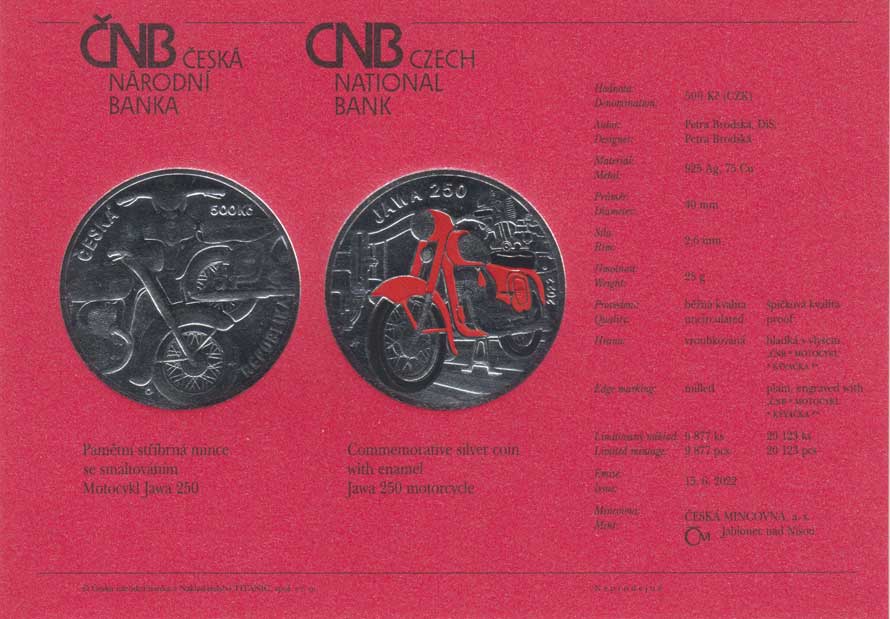 | 1701. | 500 Koruna 2022 - motocykl Jawa 250, (Ag925, 25.0g,