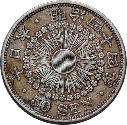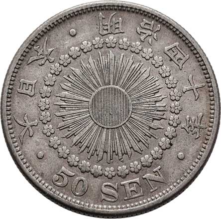 | 2573. | 50 Sen, rok 44 (= 1911), Y.31 (Ag800), 10.084g,