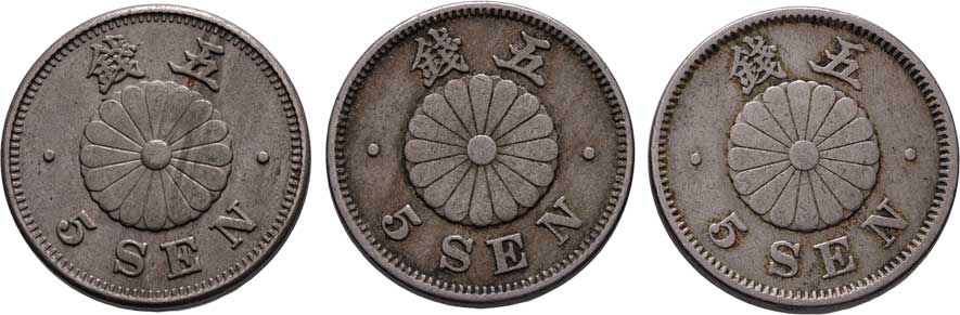 | 2585. | 5 Sen, rok 8 (= 1875), rok 10 (= 1877), Y.22 (Ag800),