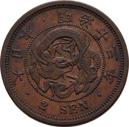 | 2588. | 2 Sen, rok 13 (= 1880), Y.18.2 (bronz), 14.287g,