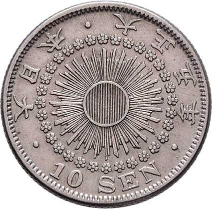| 2583. | 10 Sen, rok 10 (= 1877), Y.23 (Ag800), 2.685g,