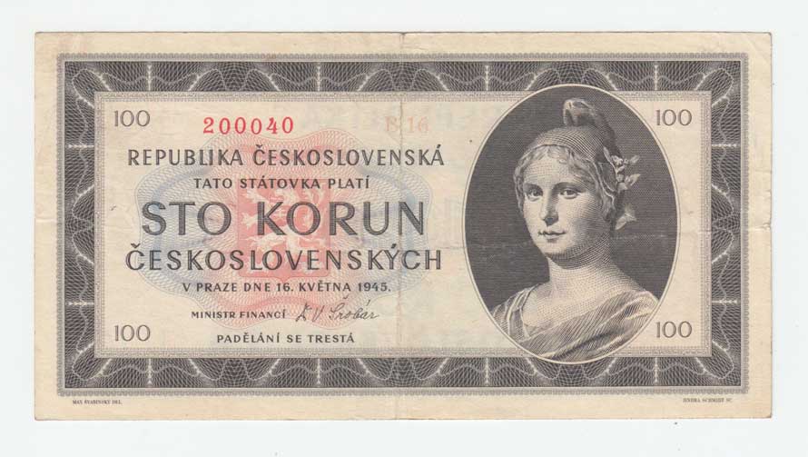 | 3209. | 100 Koruna 1945, série N13, BHK.77c, He.82d,