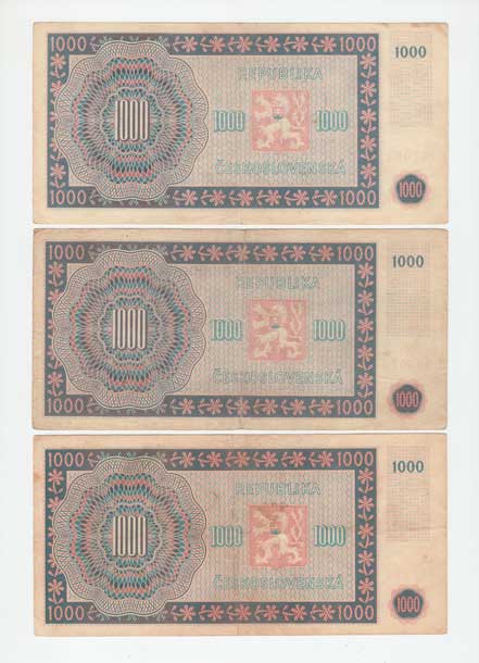 | 3213. | 1000 Koruna 1945, série 01B, 11B, 17B, 22B, BHK.78b,