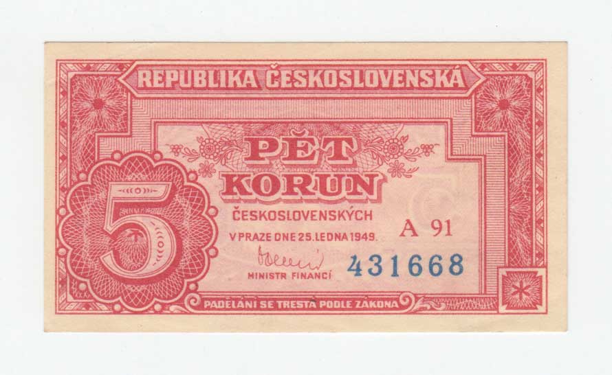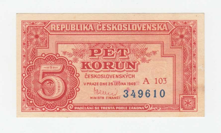 | 3240. | 5 Koruna 1949, série A103, BHK.82c, He.89a3,