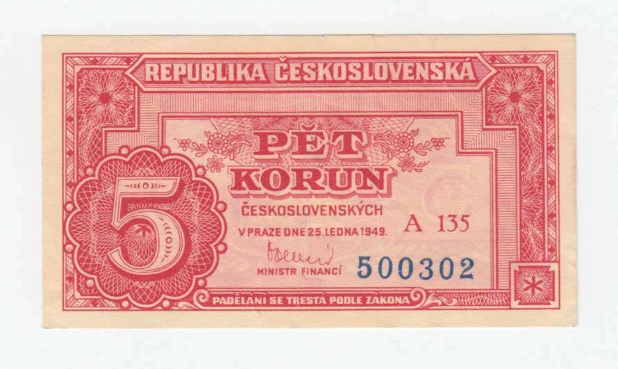 | 3242. | 5 Koruna 1949, série A135, BHK.82c, He.89a3,