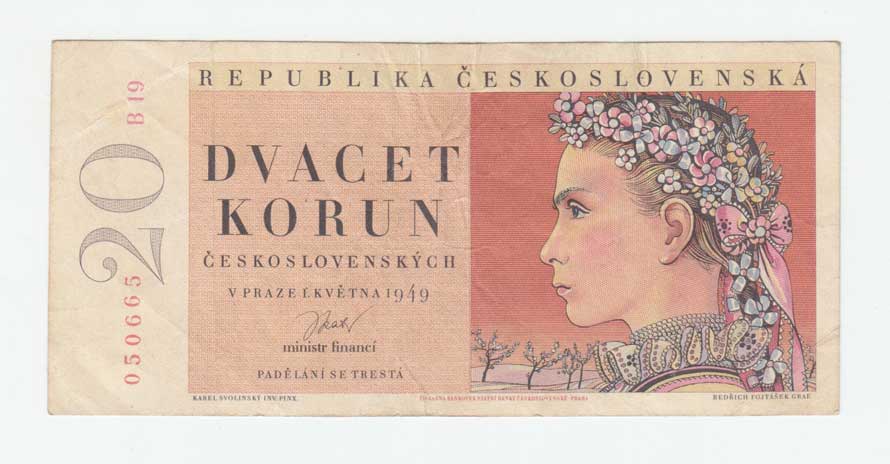 | 3244. | 20 Koruna 1949, série A13, BHK.83a, He.90a,