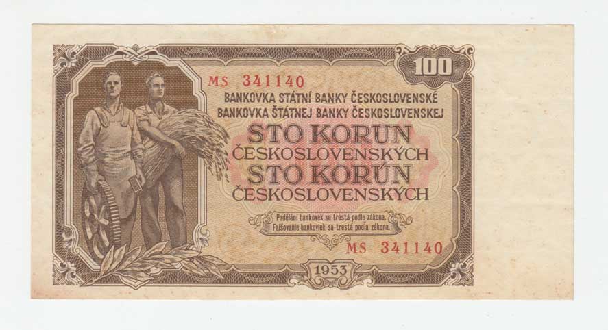 | 3277. | 100 Koruna 1953, sér. MS (Praha), BHK.92bB, He.104b,