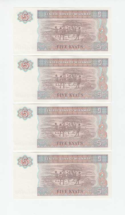 | 3404. | 5 Kyats (1997), Pick.70b, čtyři následující čísla | N | 20,- | --.- |