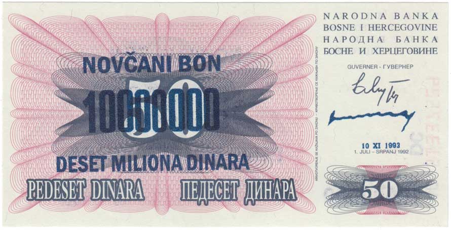 | 3410. | 10.000.000 Dinárů 1993, Pick.36 - nevydaný přetisk na