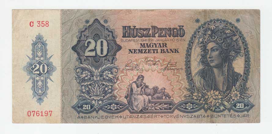 | 3477. | 20 Pengö 1941, Pick.109 | 3 | 20,- | 21,- |