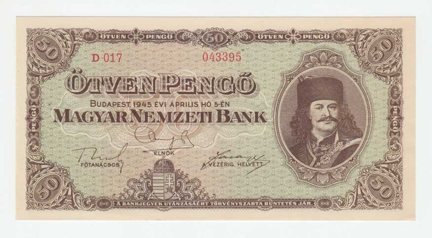 | 3478. | 50 Pengö 1945, Pick.110a | 0+ | 60,- | 650,- |