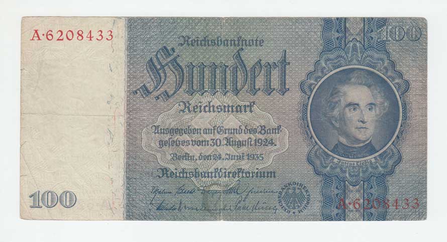 | 3567. | 100 Marka 1935, Pick.183a, Ros.176a - podt.V - sr.F,