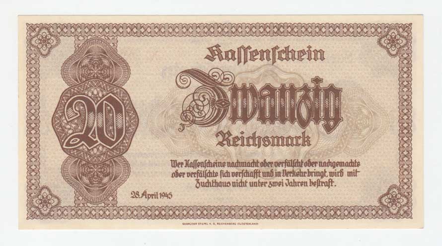 | 3577. | 20 Marka 1945, Pick.187, Ros.186 - sr.AF, Libereck