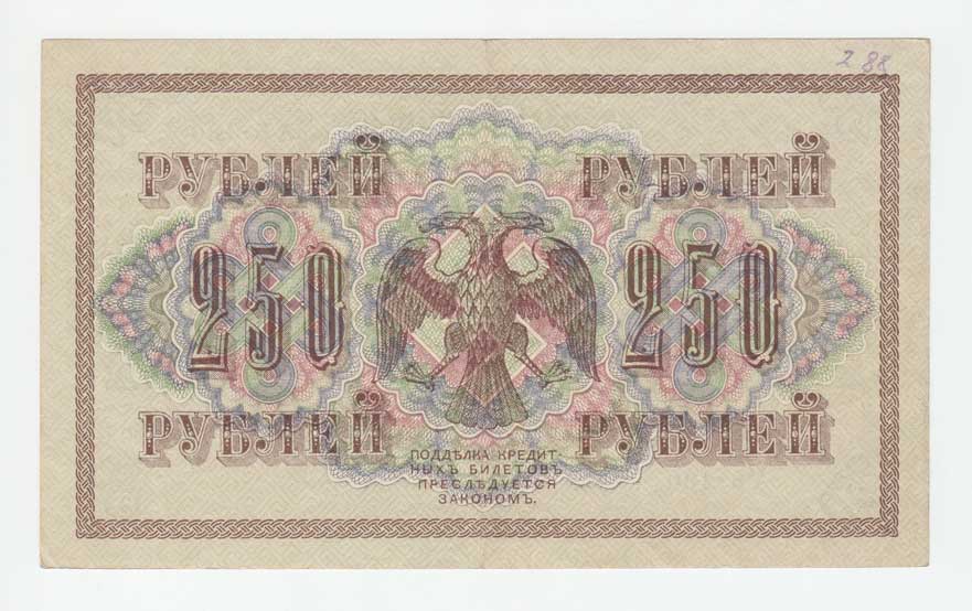 | 3701. | 250 Rubl 1917, Pick.36 - Šipov / Ja.Metz, v reversu