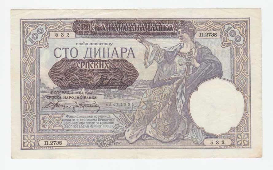 | 3723. | 100 Dinárů 1941 - přetisk na 1929, Pick.23 | 1- | 100,- | 100,- |