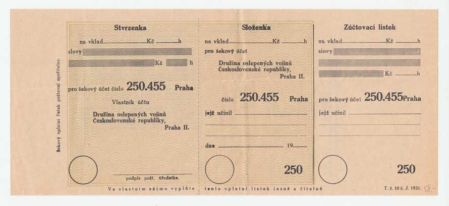 | 3815. | Praha 1931 - Poštovní spořitelna - šekový lístek účtu