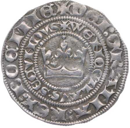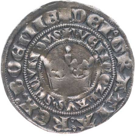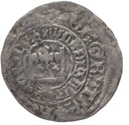 | 272. | Haléř se čtyřrázem, Kutná Hora, česká koruna (z let 1384-1419)