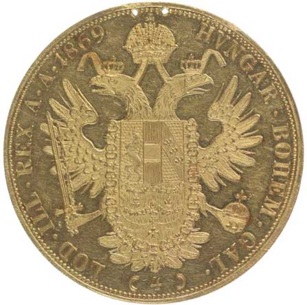 | 21. | 4 Dukát 1869 A (raženo pouze 18.740 ks)