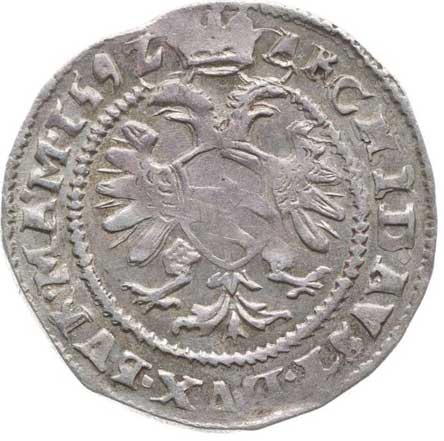 | 369. | Bílý groš 1592, K.Hora-Šatný, J.13a, MKČ.376 dr.ned. | 1/1 | 600,- | 1100,- |