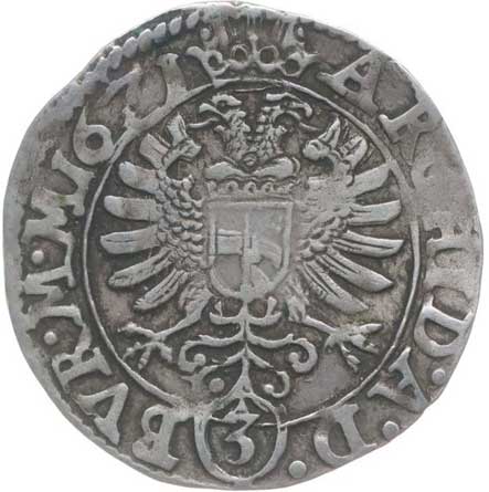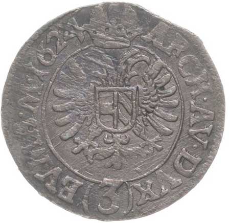 | 427. | 3 Krejcar 1631, Praha-du Bois, J.30c, MKČ.762pod. velká hlava,