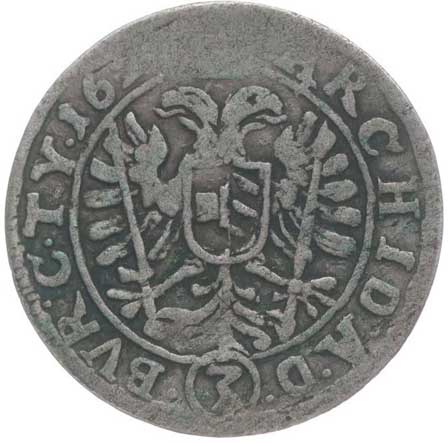 | 459. | 3 Krejcar 1637, Olomouc-Sonnenschein, MKČ.1239, Her.788a | 1/1 | 500,- | 1300,- |