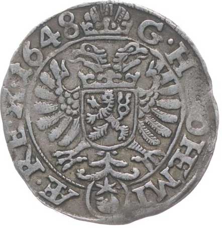 | 457. | 3 Krejcar 1648, Praha-Wolker, J.3b, MKČ.1181 | -1/1- | 300,- | 1200,- |