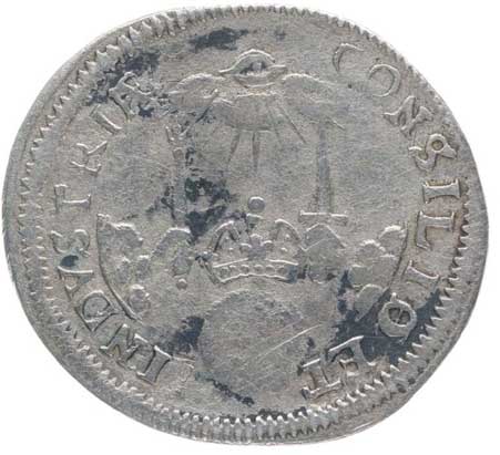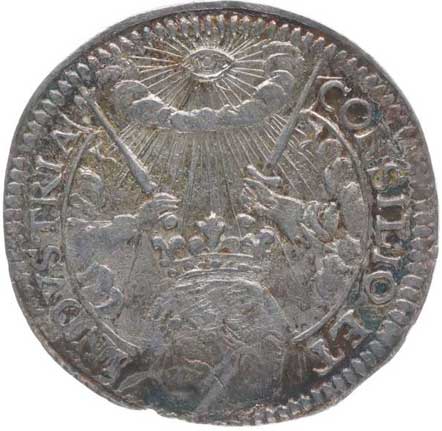 Koruna držená anděly, 6řádk.nápis / pod božím okem drží dvě ruce žezlo a meč, Ag 19 mm, 1,42 g, Nov.IX/E-14b, Mo.874, LG.II/488 R! |