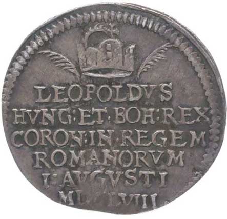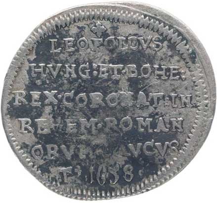 | 526. | Střední žeton na císařskou korunovaci ve Frankfurtu, 1.8.1658