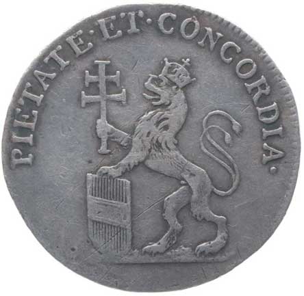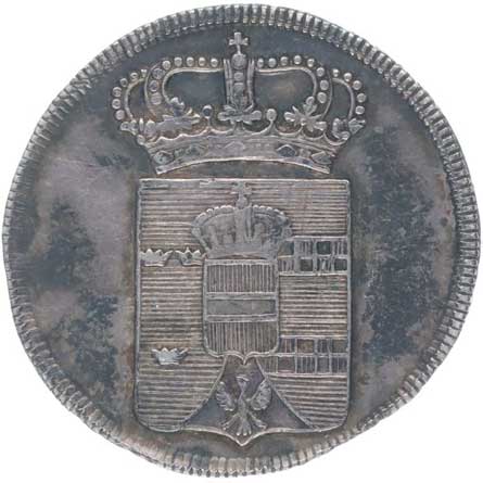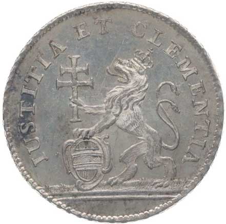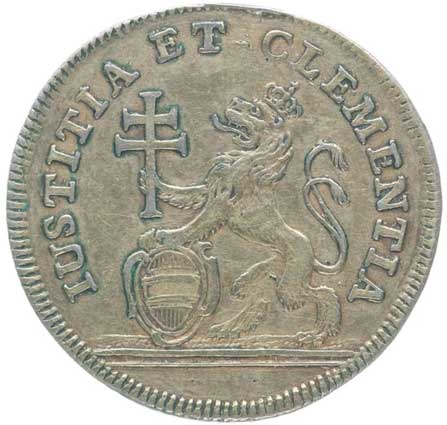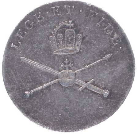 Lev s křížem a znakem, opis / 9řádk.nápis pod korunou Ag 26 mm,3.55 g, Nov.XIII/B-1b, Ho.2839, Mo.1679 |
