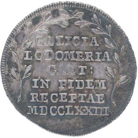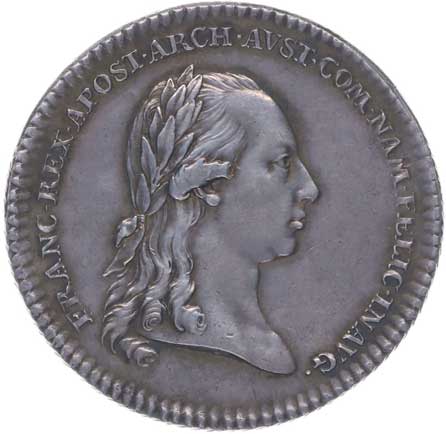 Hlava zprava, latinský opis / německý nápis ve věnci, Ag 41 mm, 34,50 g, ČS.1540 |