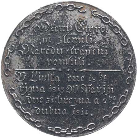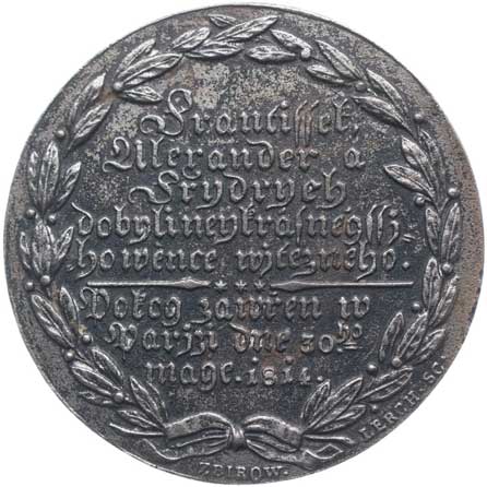 mírně zleva, opis / 4řádk.nápis ve věnci, Sign., Cu 58 mm |