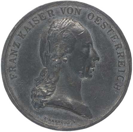 Poprsí zprava, opis / Austria sedící na trůnu, Putti s rohem hojnosti, opis, Sign., Bronz 60 mm |