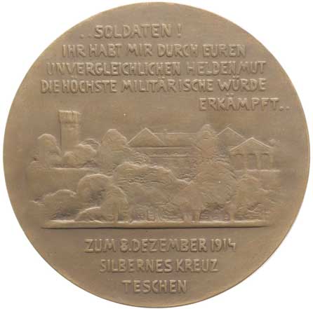 Poprsí zprava, opis / těšínský zámek s parkem, nápisy Sign., Bronz 55 mm |
