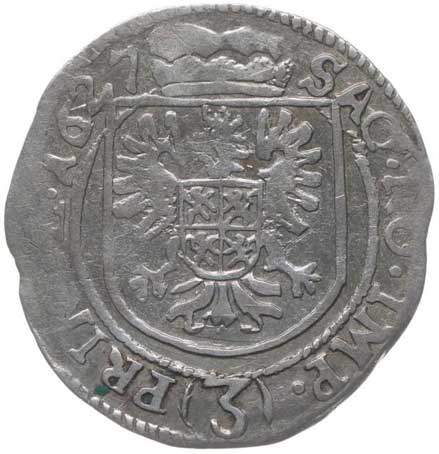 | 592. | 3 Krejcar 1627, Jičín-Reick, Nech.27, Do.3981, Pol.227 dr.ned. | -1/1- | 2000,- | 7000,- |