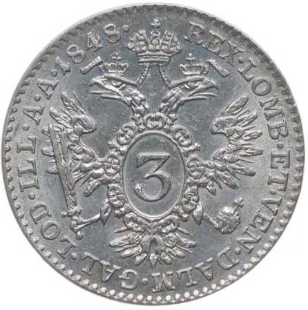 | 832. | 3 Krejcar 1848 A | 1/0 | 500,- | 900,- |