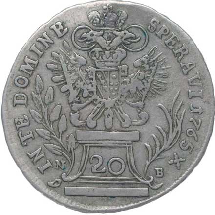 | 926. | 20 Krejcar 1765 N-B - C, Velká Baňa (posmrtný r.1768), Her.358