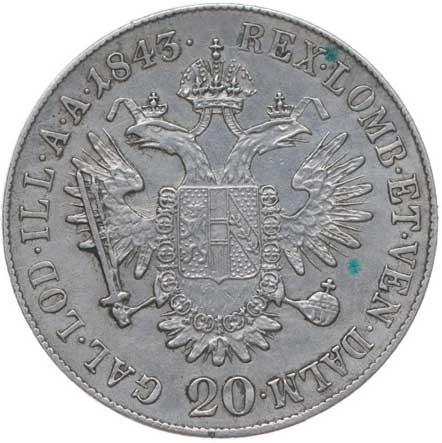 | 975. | 20 Krejcar 1843 E | 1/1 | 500,- | 800,- |