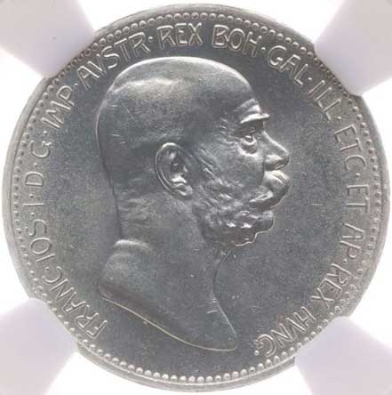 | 1205. | 5 Koruna 1909 b.zn. Schwartz, znač. NGC: MS60 | tém.0/0 | 2000,- | 2400,- |