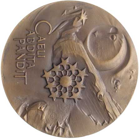 Poprdí B.Balbína (1921-1688) čelně, opis / pohled na věž Klementina opis Klementinum - národní knihovna ČR, Sign., Mosaz 30 mm |