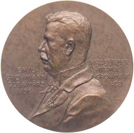 Poprsí Wernera v.Siemens a budovy Stammhaus, opis / korunovaný znak mětsa, vročení, opis, Punc.900, Ag 40 mm, 20,1 g |