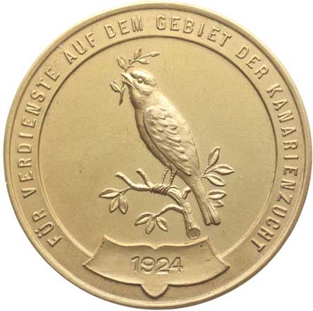 Kanár na větvičce, opis / dva znaky, opis, Sign.Christlbauer Pozlac.bronz 45 mm |