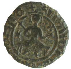 | 421. | AE 19 mm A: Sedící korunovaný král na trůnu s žezlem R: Kříž, ve středu