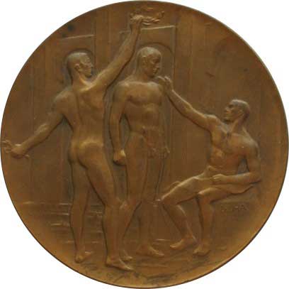 mužského těla za sloupem, část Drážďan, 1896 / Pravděpodobně pokra- čování horní části těla s mávajícím šátkem Al 36 mm 5,47 gr., pův.ouš. |