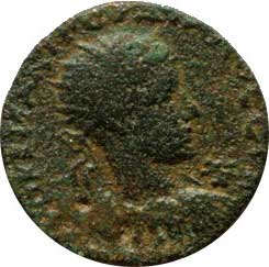 | 135. | AE 18 mm A: Ověnčená hlava Helia vpravo R: Růže, okolo nápis Sear 5084, pěkná pat., R | -1/2 | 260,- | 300,- |