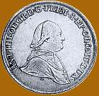THEODOR HRABĚ COLLOREDO-WALDSEE 1777-1811 První olomoucký arcibiskup. Vymohl si právo razit mince, ale v přísně omezeném množství a jednorázově v císařské mincovně ve Vídni. Známe tak jeho 10 a 20 krejcary, půl a jednotolary a dukáty. Samozřejmě vydal i intronizační medaile. |