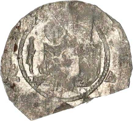 | 204. | Brakteát (23 mm) - poprsí sv. Hidegardy s lilií a křížem, s opise