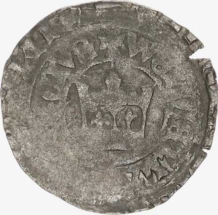 | 286. | Malý (černý) peníz 1539?, K.Hora jako MKČ 85 var.: nad korunou