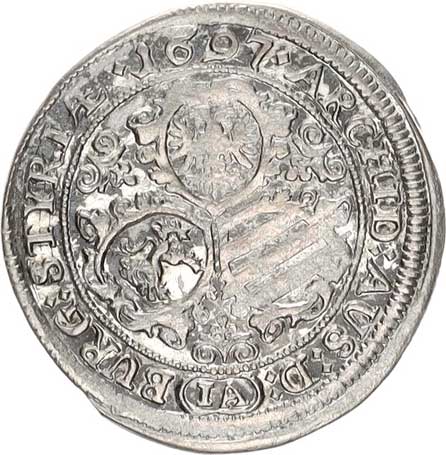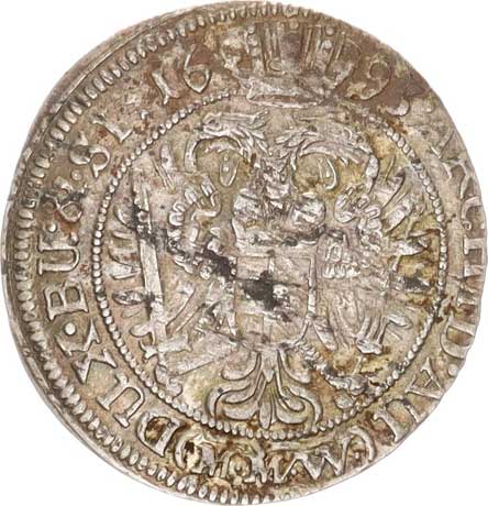 | 621. | XV kr. 1690 b.zn., Tyroly, Hall Hol.90.1,1 var B (6 teček na